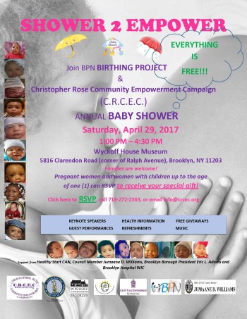 Our friends from the BPN Birthing Project and Christopher Rose Community Empowerment Campaign will be hosting their Annual Baby Shower. It’s free and open to all community members. Pregnant woman and women with children up to the age of one can RSVP to receive a special gift.